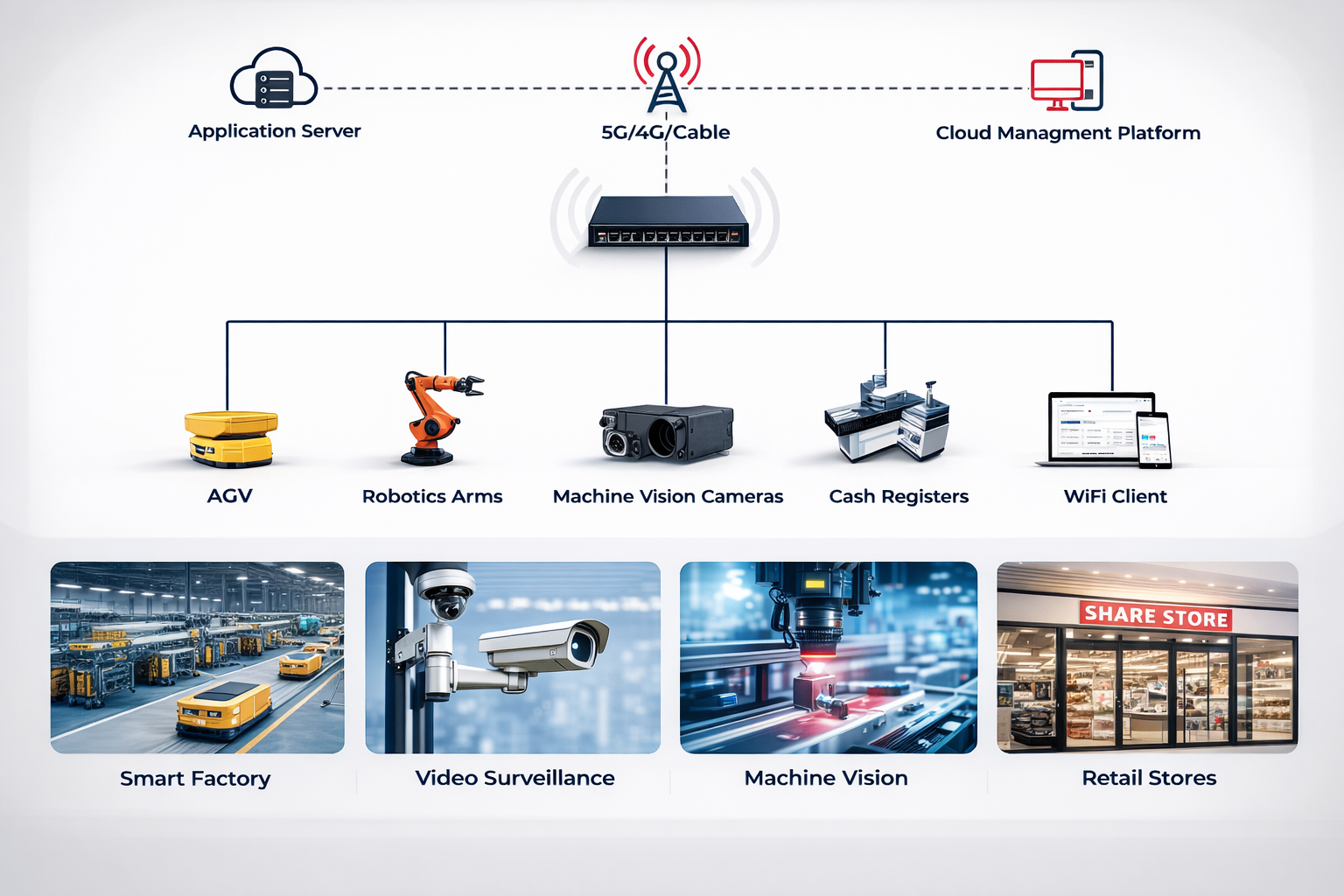 Enables remote monitoring and centralized network control through a cloud-based platform